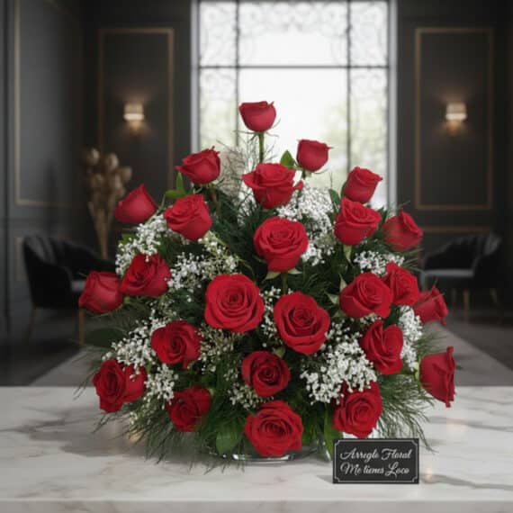 Con el Arreglo Floral Me tienes Loco puedes expresar los sentimientos más profundos del corazón, especialmente con las rosas.
